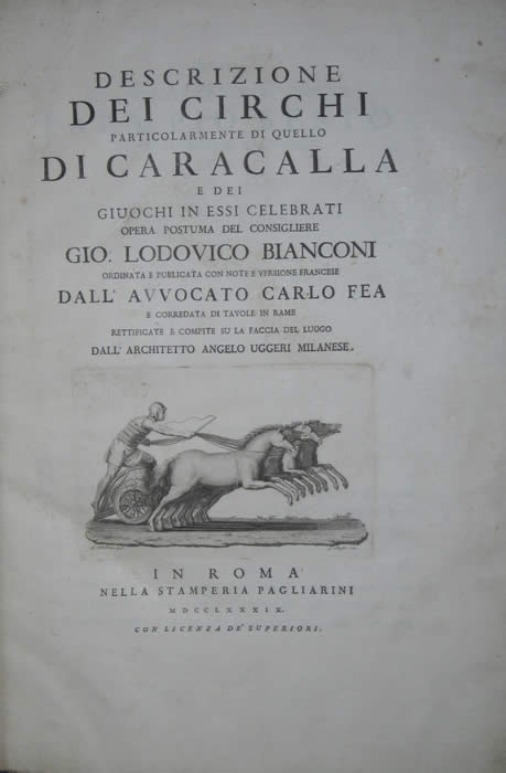 BIANCONI, Giovanni Lodovico. DESCRIZIONE DEI CIRCHI PARTICOLARMENTE DE QUELLO, DI CARACALLA.